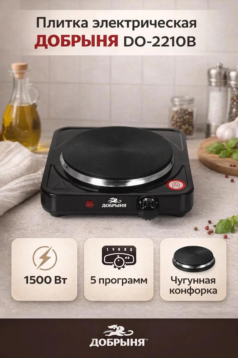 Плита настольная Добрыня DO-2210В (электрическая, эмалированная сталь, черный) - Интернет-магазин Матрица: бытовая техника, электроника, товары для дома и др.