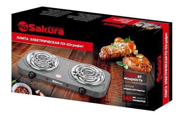 Плита настольная Sakura ПЭ-03 (электрическая, спиральный нагревательный элемент, графит) - Интернет-магазин Матрица: бытовая техника, электроника, товары для дома и др.