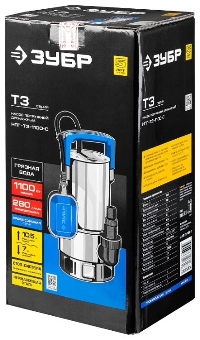 Погружной дренажный ЗУБР НПГ-Т3-1100-С 1100 Вт 10,5 м грязная) - Интернет-магазин Матрица: бытовая техника, электроника, товары для дома и др.