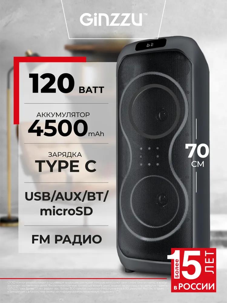 Портативная акустика Ginzzu GM-114 (1300 Вт черный)
