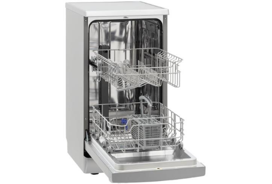 Отдельностоящая посудомоечная машина шириной 45 см вмещает 9 комплектов посуды. Для удобства использования в модели предусмотрен режим половинной загрузки, который позволяет экономить расход воды, таймер отложенного старта, а также возможность регулировки верхней корзины по высоте, что позволяет удобно загружать и мыть посуду разных размеров.