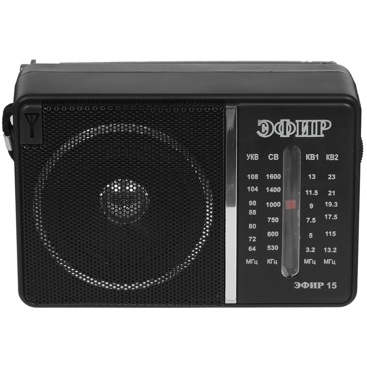 Радиоприемник ЭФИР 15, УКВ 64-108МГц, СВ 530-1600КГц, КВ1,КВ2 бат. 2*R20(D) черный - Интернет-магазин Матрица: бытовая техника, электроника, товары для дома и др.