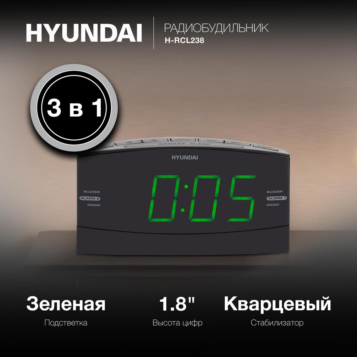 Радиоприемник Hyundai H-RCL238 LCD подсв:зеленая часы:цифровые FM черный - Интернет-магазин Матрица: бытовая техника, электроника, товары для дома и др.