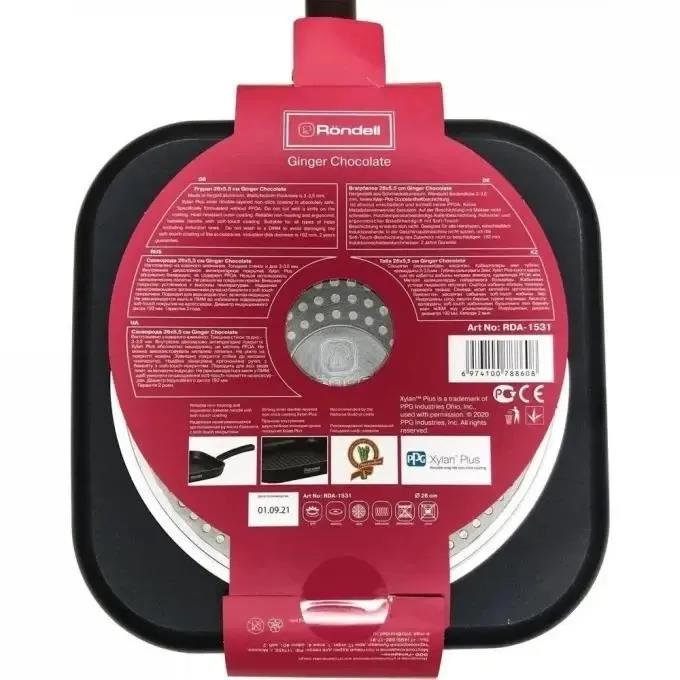 Сковорода-гриль Rondell Ginger RDA-1531 квадратная, покрытие: антипригарное ручка несъемная (без крышки) черный (26 см )
