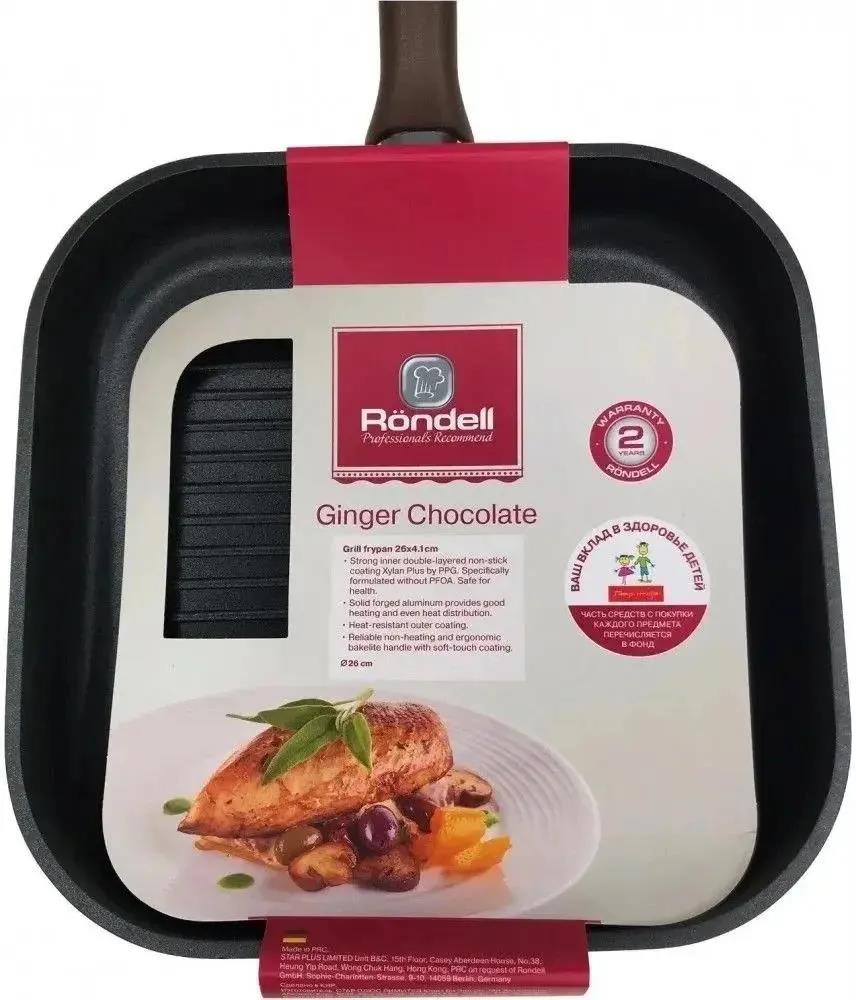 Сковорода-гриль Rondell Ginger RDA-1531 квадратная, покрытие: антипригарное ручка несъемная (без крышки) черный (26 см ) - Интернет-магазин Матрица: бытовая техника, электроника, товары для дома и др.