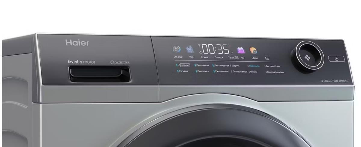 Haier HW70-BP12269S — это узкая стиральная машина с фронтальным типом загрузки. Модель выполнена в серебристом цвете, вмещает до 7 килограмм сухого белья и может работать со скоростью отжима до 1200 оборотов в минуту. Инверторный мотор обеспечивает бесшумную работу и сверхнизкое энергопотребление (класс A+++). Комплектация включает шланг с защитой от протечки Aquastop. В распоряжении пользователя 12 интеллектуальных программ для стирки любых типов тканей: от хлопка и синтетики до пуха и шерсти. Диапазон рабочих температур — от 20 °C до 90 °C. Усилить эффект от программ позволяют дополнительные функции: UV-обработка уничтожает бактерии в воде и во внутреннем пространстве машинки, а обработка одежды паром разглаживает волокна ткани и облегчает глажку вещей после стирки. Также предусмотрен отложенный старт с таймером от 30 минут до 24 часов и возможность корректировать время выполнения программ за счет опции i-time. Настроить параметры стирки можно с помощью сенсорной панели управления с цветным дисплеем Color&Touch.