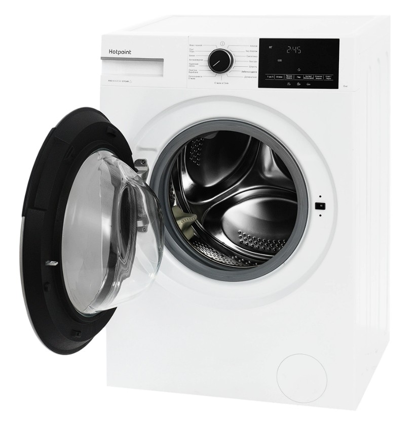 Модель с тихим инверторным двигателем позволяет вручную настраивать температуру нагрева воды и скорость отжима. Есть 15 автоматических программ и набор дополнительных функций. Система автобаланса оберегает машину от опасных для подшипников и барабана вибраций на этапе отжима. Автовзвешивание подстраивает длительность цикла и количество воды в зависимости от веса загруженного белья.