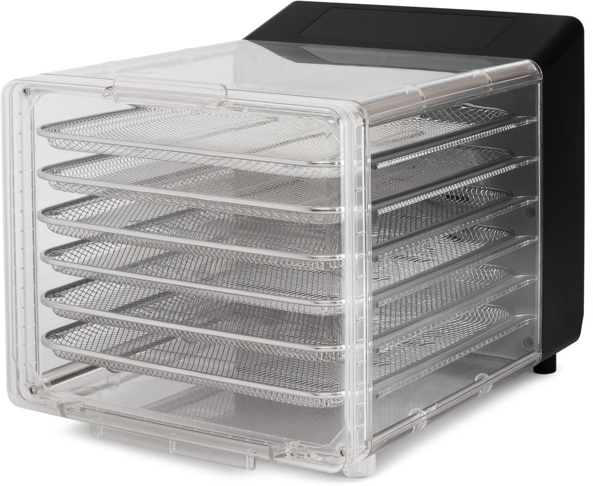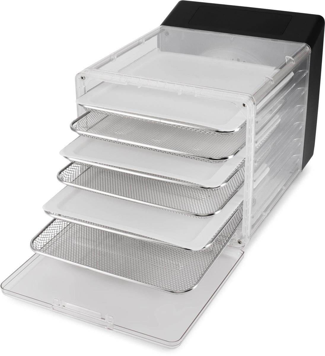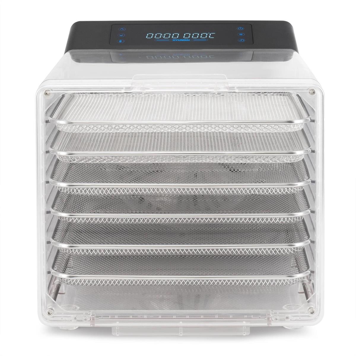Сушилка Hyundai HYFD-8800 представляет собой инновационное решение для тех, кто ценит компактность, удобство и высокую эффективность. Предлагает 6 уровней сушки с 12 поддонами (6 металлических для сушки и еще 6 для приготовления пастилы), что позволяет обрабатывать достаточно большое количество продуктов одновременно. Сенсорное управление и таймер до 48 часов упрощают использование, делая процесс сушки комфортным и эффективным.