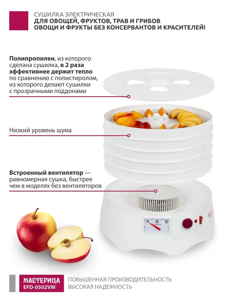 Сушилка для овощей Мастерица EFD-0502VM 5 поддонов + 1 поддон д/пастилы (поддонов 5 шт, 280 Вт , белый) - Интернет-магазин Матрица: бытовая техника, электроника, товары для дома и др.