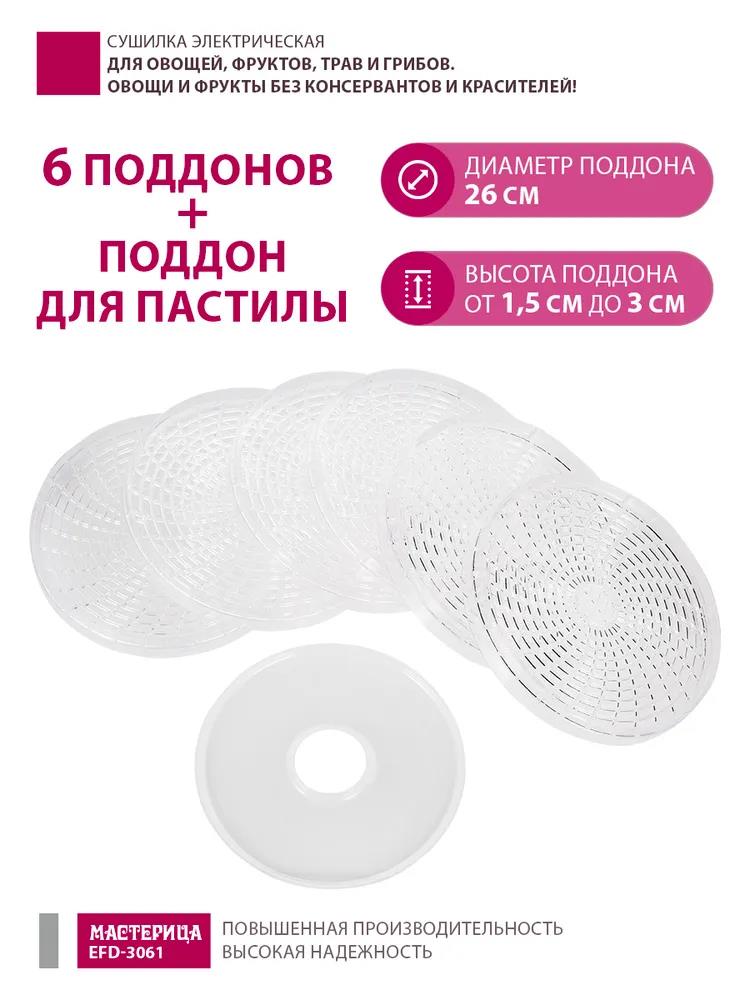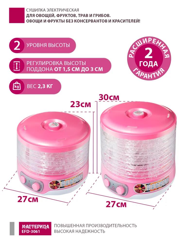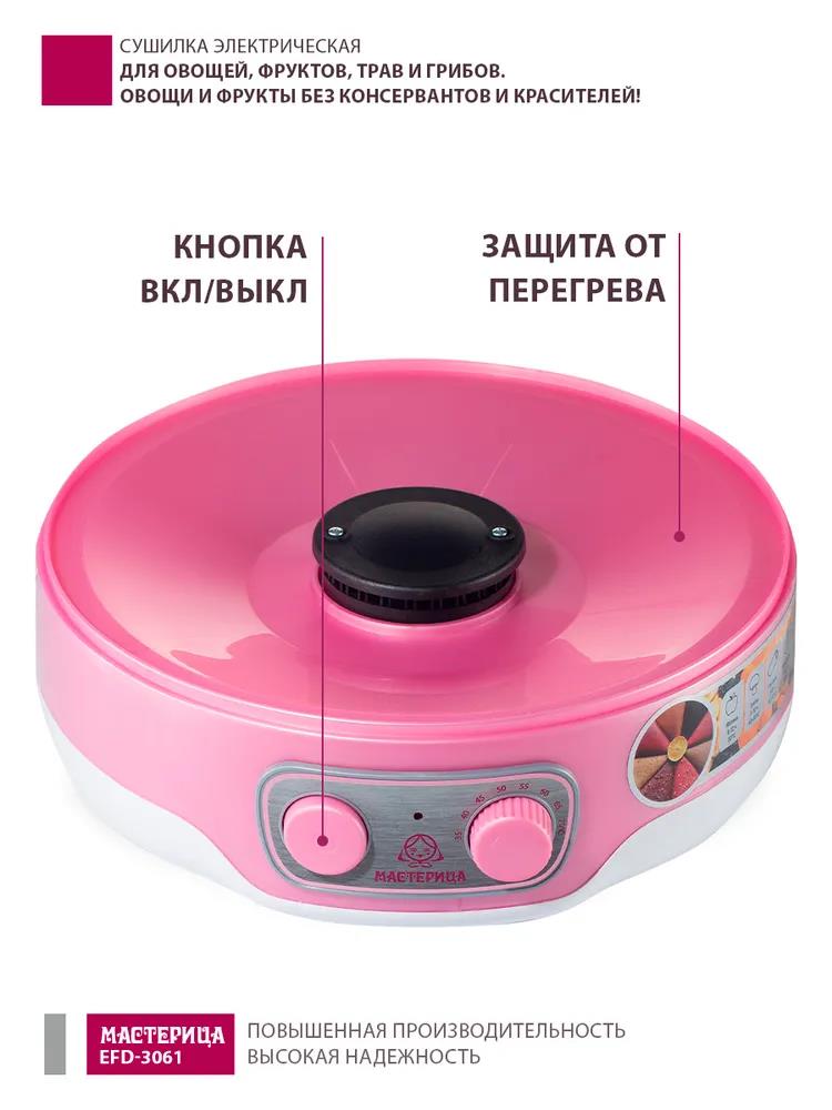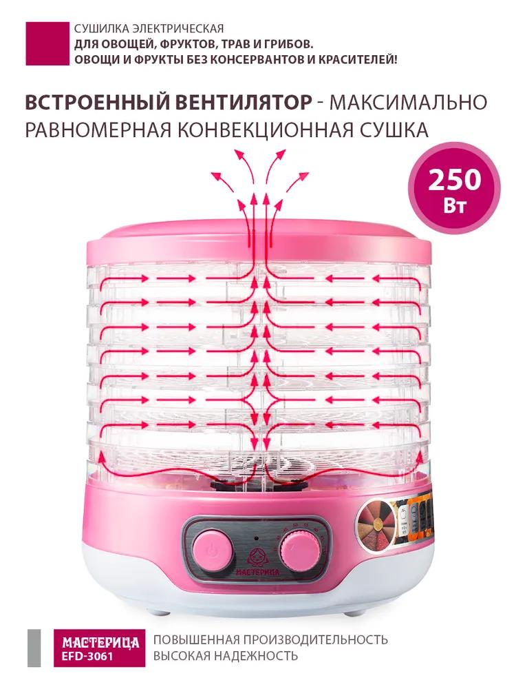 Сушилка для овощей Мастерица EFD-3061 6 поддонов + 1 поддон д/пастилы в подарок, 250 Вт, D 26 см (поддонов 6 шт, 250 Вт , розовый перламутр) - Интернет-магазин Матрица: бытовая техника, электроника, товары для дома и др.