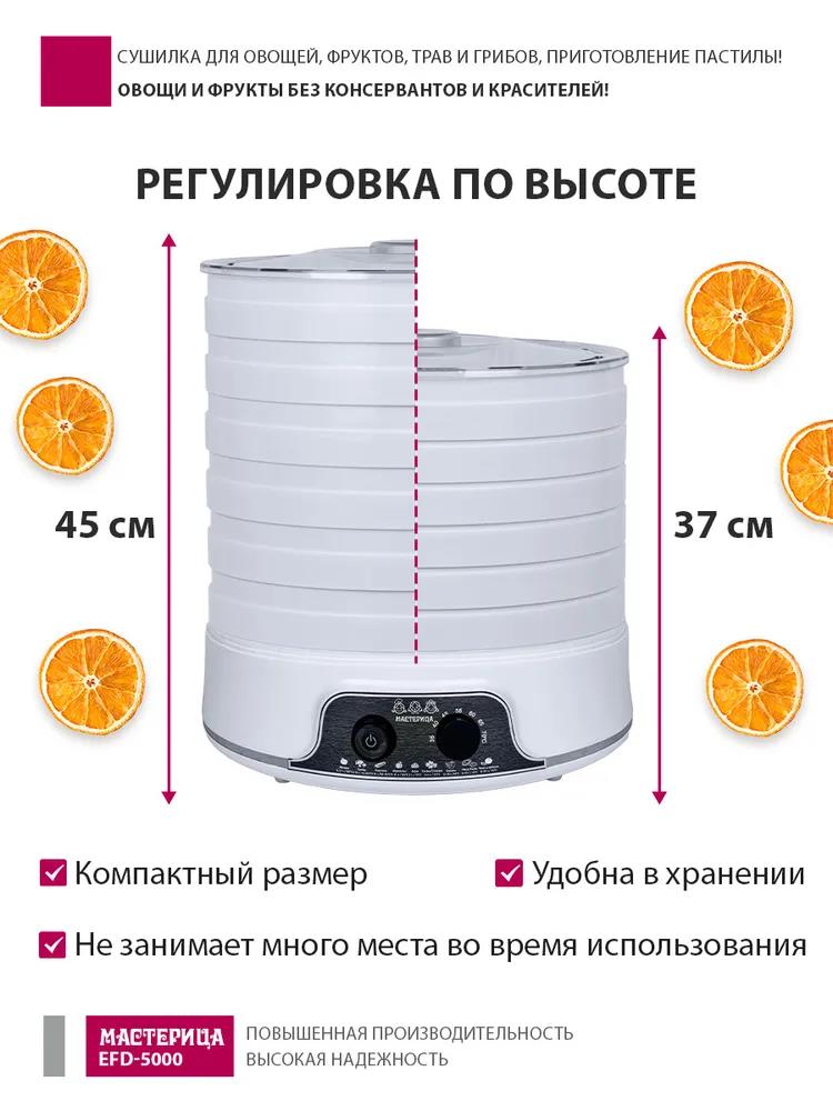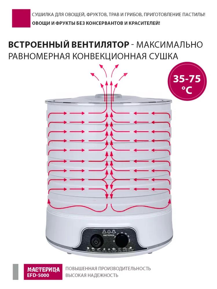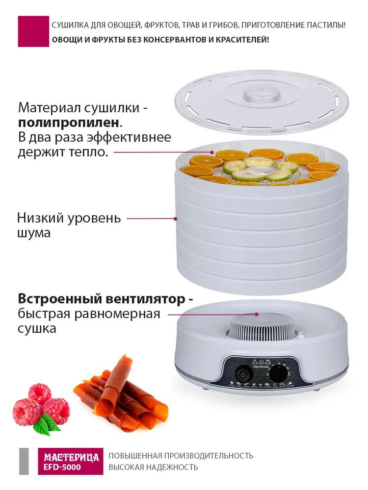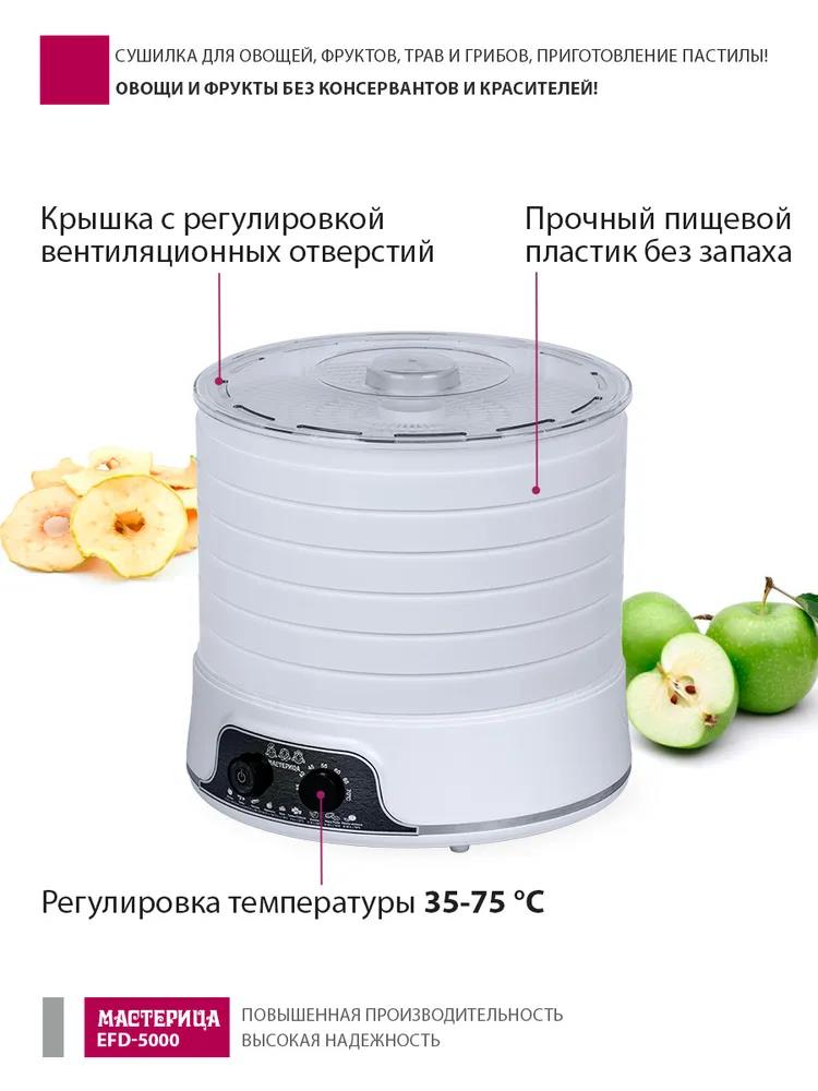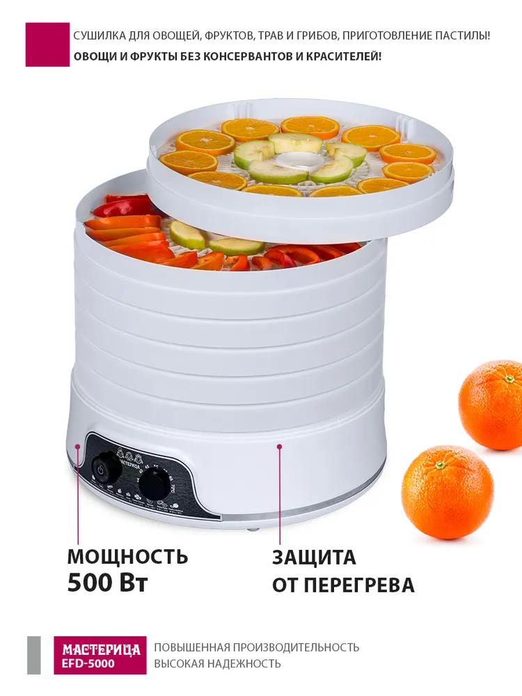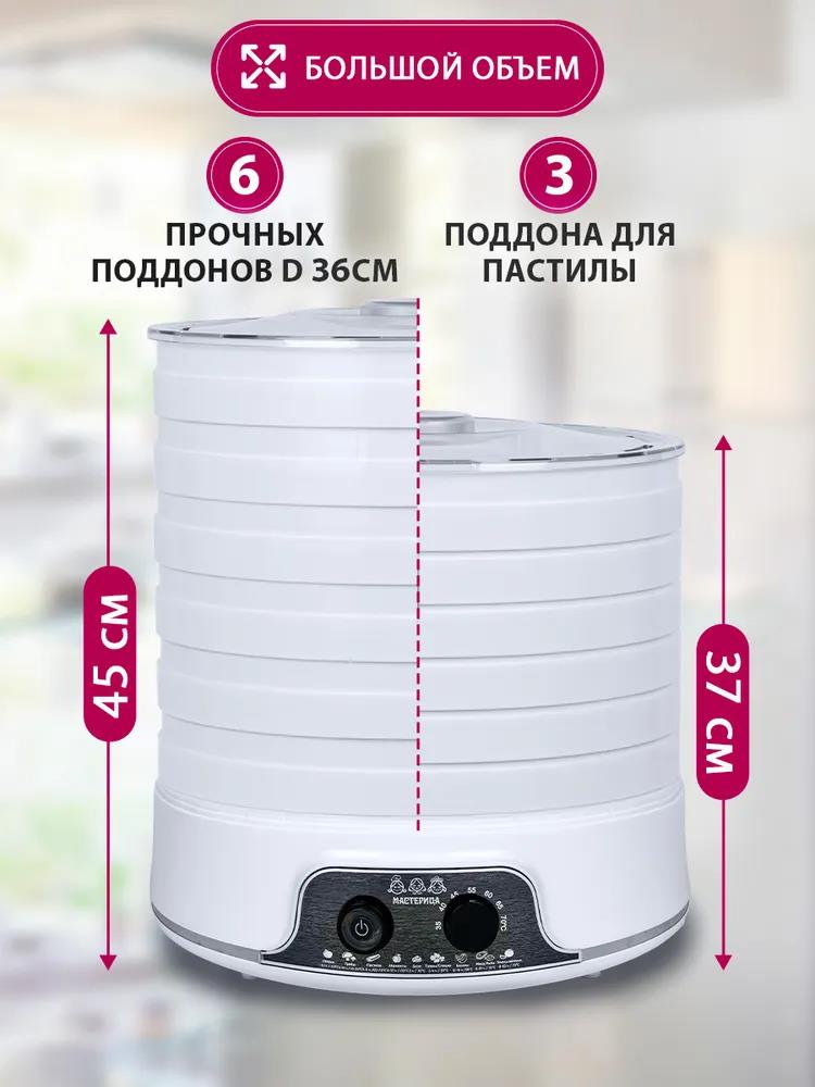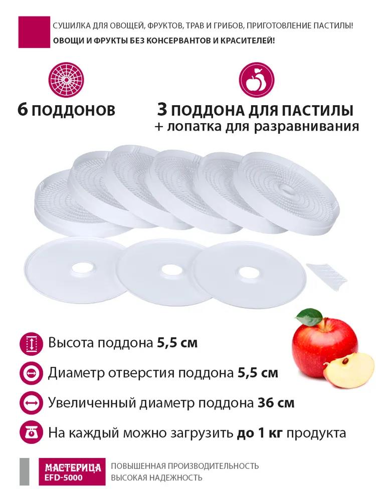 Сушилка для овощей Мастерица EFD-5000, 6 белых поддонов + 3 поддона д/пастилы 500Вт, увеличенный D поддона 36 см (поддонов 6 шт, 500 Вт , белый) - Интернет-магазин Матрица: бытовая техника, электроника, товары для дома и др.