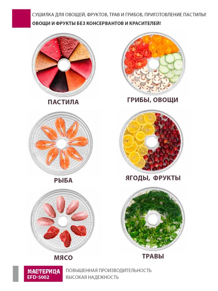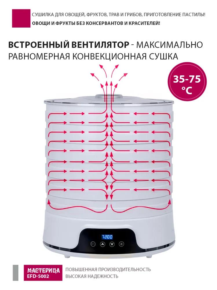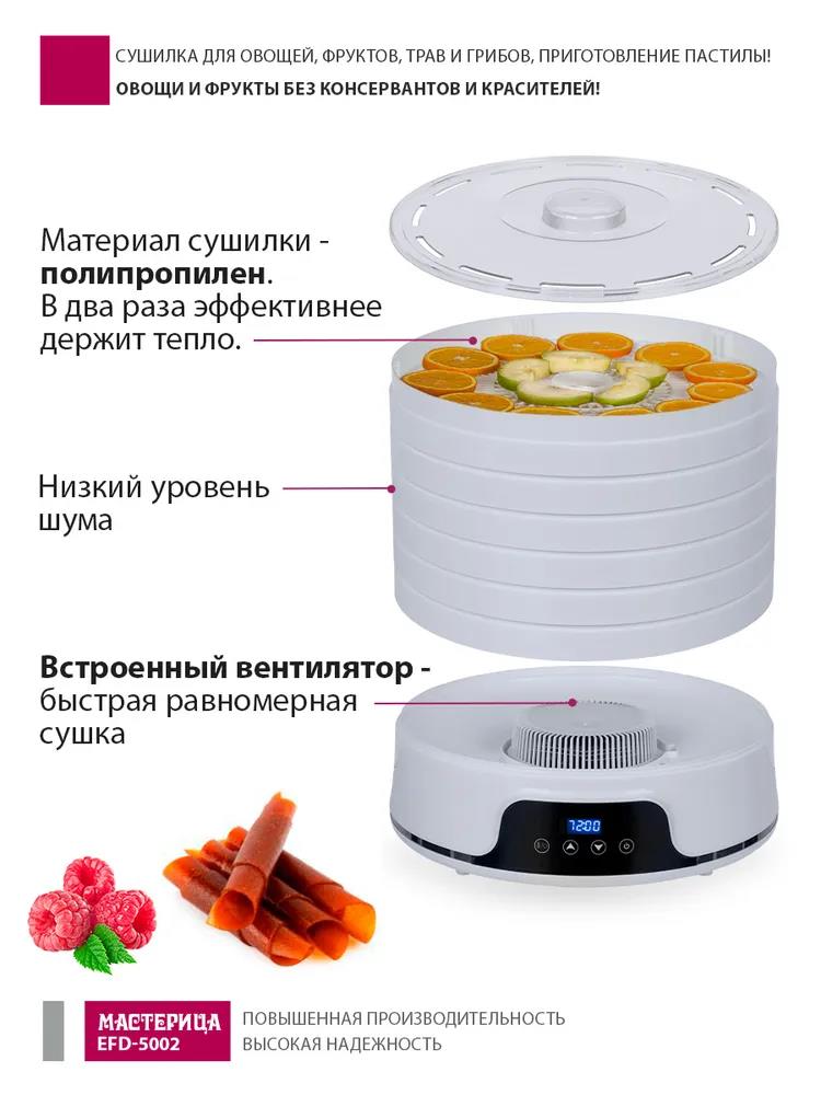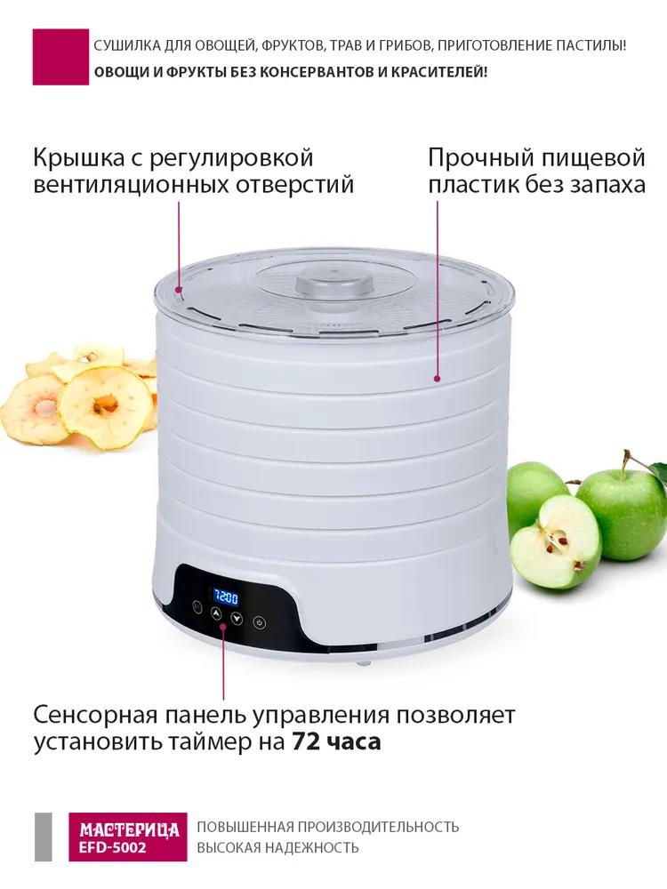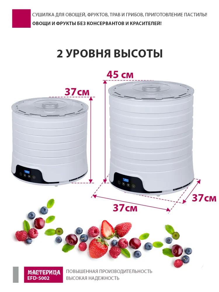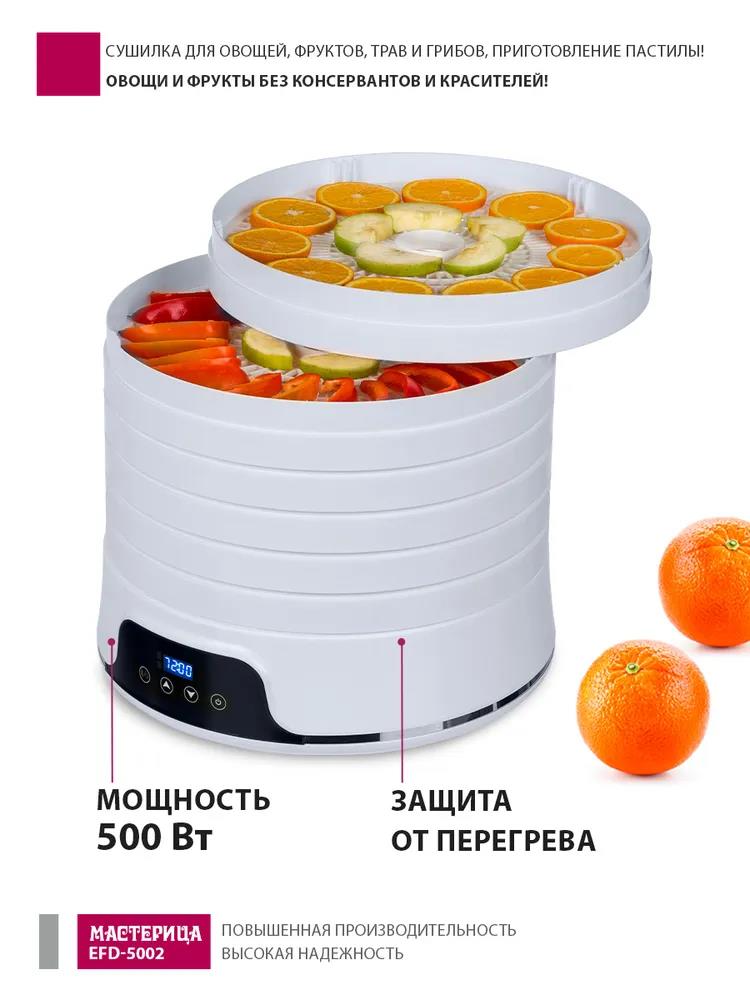 Сушилка для овощей Мастерица EFD-5002, 6 бел. поддонов + 3 поддона д/пастилы 500Вт, увелич. D поддона 36 см (поддонов 6 шт, 500 Вт , белый) - Интернет-магазин Матрица: бытовая техника, электроника, товары для дома и др.