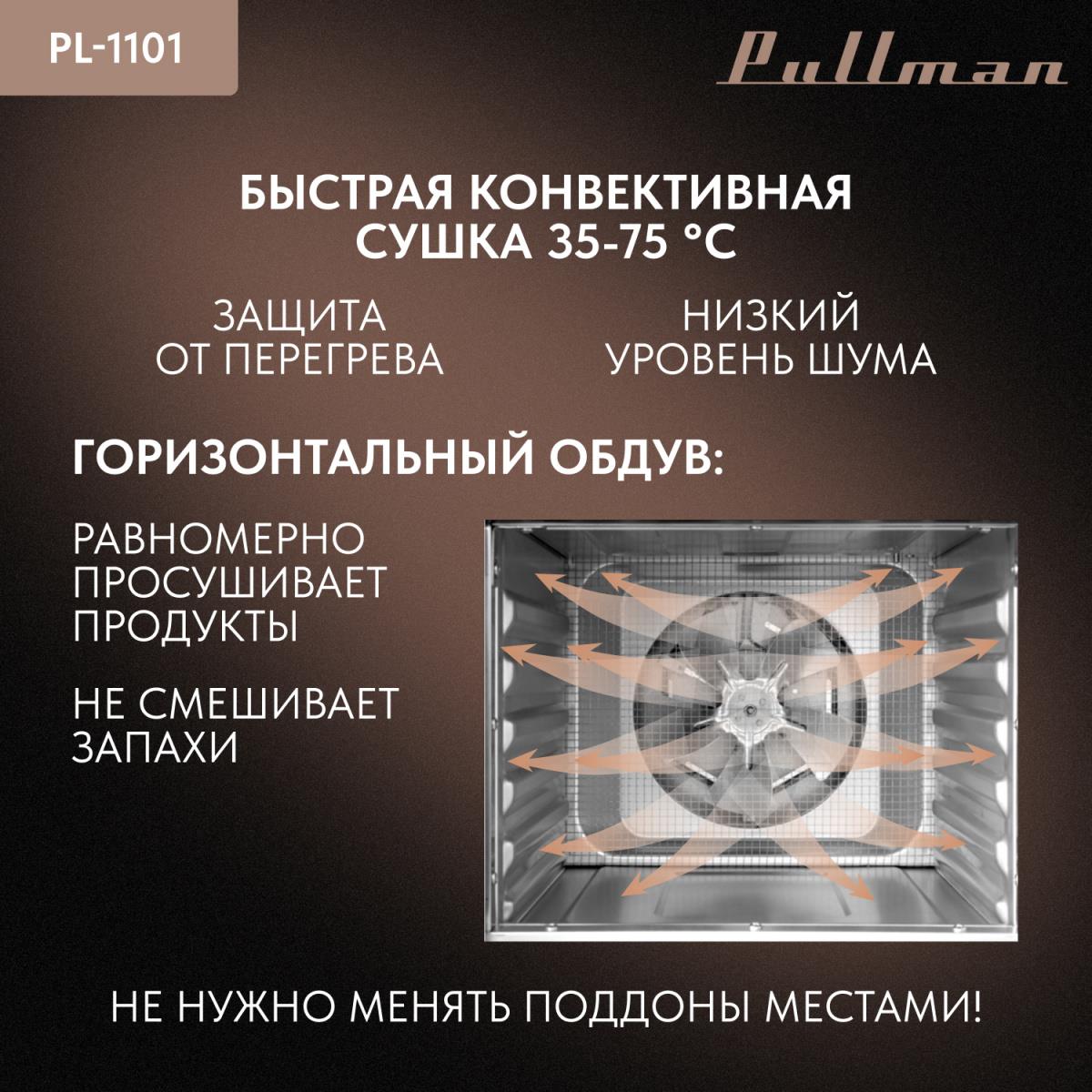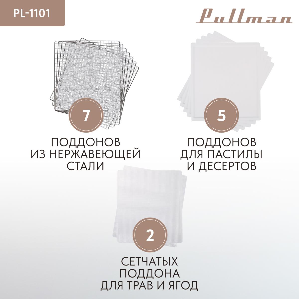 Сушилка для овощей Pullman PL-1101 (поддонов 14 шт, 650 Вт , серебристый)