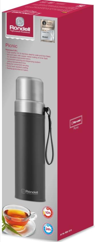 Термос Rondell Picnic RDS-1819 для напитков 0.8л. серый карт. коробка 0,8 л - Интернет-магазин Матрица: бытовая техника, электроника, товары для дома и др.