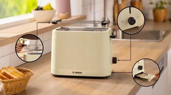 Тостер Bosch TAT3M127 (950 Вт  бежевый) - Интернет-магазин Матрица: бытовая техника, электроника, товары для дома и др.