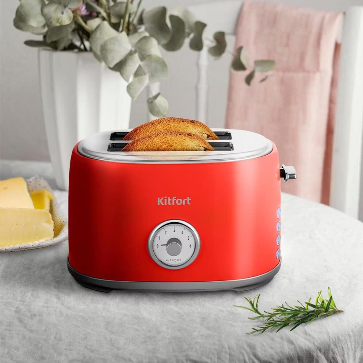Тостер Kitfort КТ-6456 (980 Вт  красный, серебристый) - Интернет-магазин Матрица: бытовая техника, электроника, товары для дома и др.