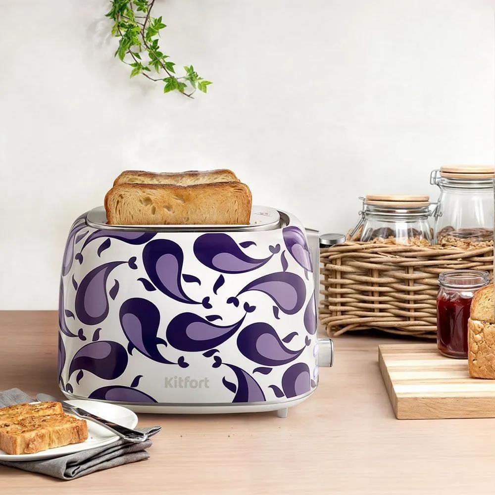 Тостер Kitfort КТ-6863 (1080 Вт  фиолетовый, белый) - Интернет-магазин Матрица: бытовая техника, электроника, товары для дома и др.