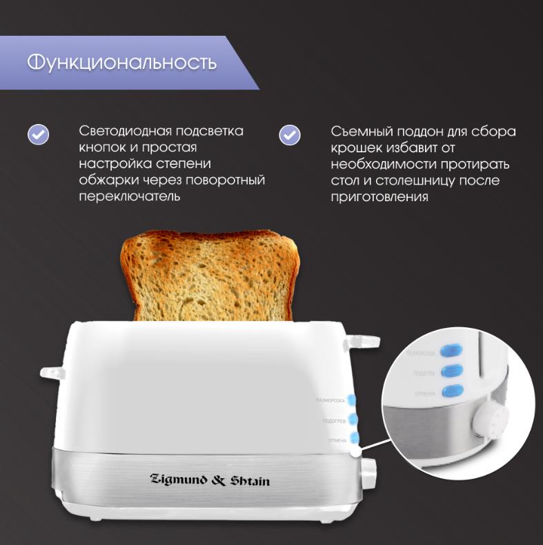 Тостер Zigmund & Shtain Kuchen-Meister ST-80 W (900 Вт белый) - Интернет-магазин Матрица: бытовая техника, электроника, товары для дома и др.