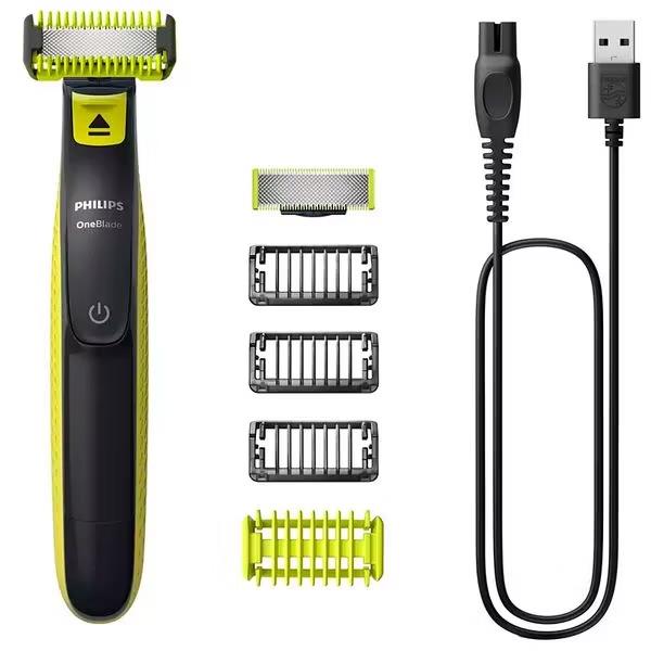 Триммер Philips OneBlade QP2824/10 подходит для удаления волос на лице, теле, позволяет оформить бороду и усы. В комплект входят пять насадок, в т. ч. три расчески для удаления щетины. Длина стрижки устанавливается в пределах 0-5 мм. Встроена функция прореживания. Двусторонние лезвия изготовлены из нержавеющей стали и позволяют создавать четкие, ровные края. Для очистки ножи промываются под струей воды. Технология OneBlade повторяет все контуры лица, позволяет комфортно брить и подстригать все необходимые участки. Для защиты чувствительных зон предусмотрен специальный защитный кожух, который устанавливается поверх лезвий. Прибор работает от перезаряжаемого аккумулятора типа Ni-Mh в течение 45 минут. Полная зарядка составляет 8 часов. Встроена индикация заряда аккумулятора. Устройство водонепроницаемо, что делает возможным сухое и влажное бритье.