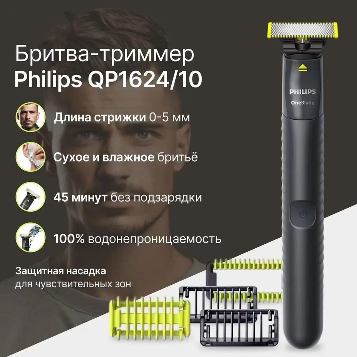 Триммер тела, бороды и усов Philips OneBlade QP1624/10, серый - Интернет-магазин Матрица: бытовая техника, электроника, товары для дома и др.