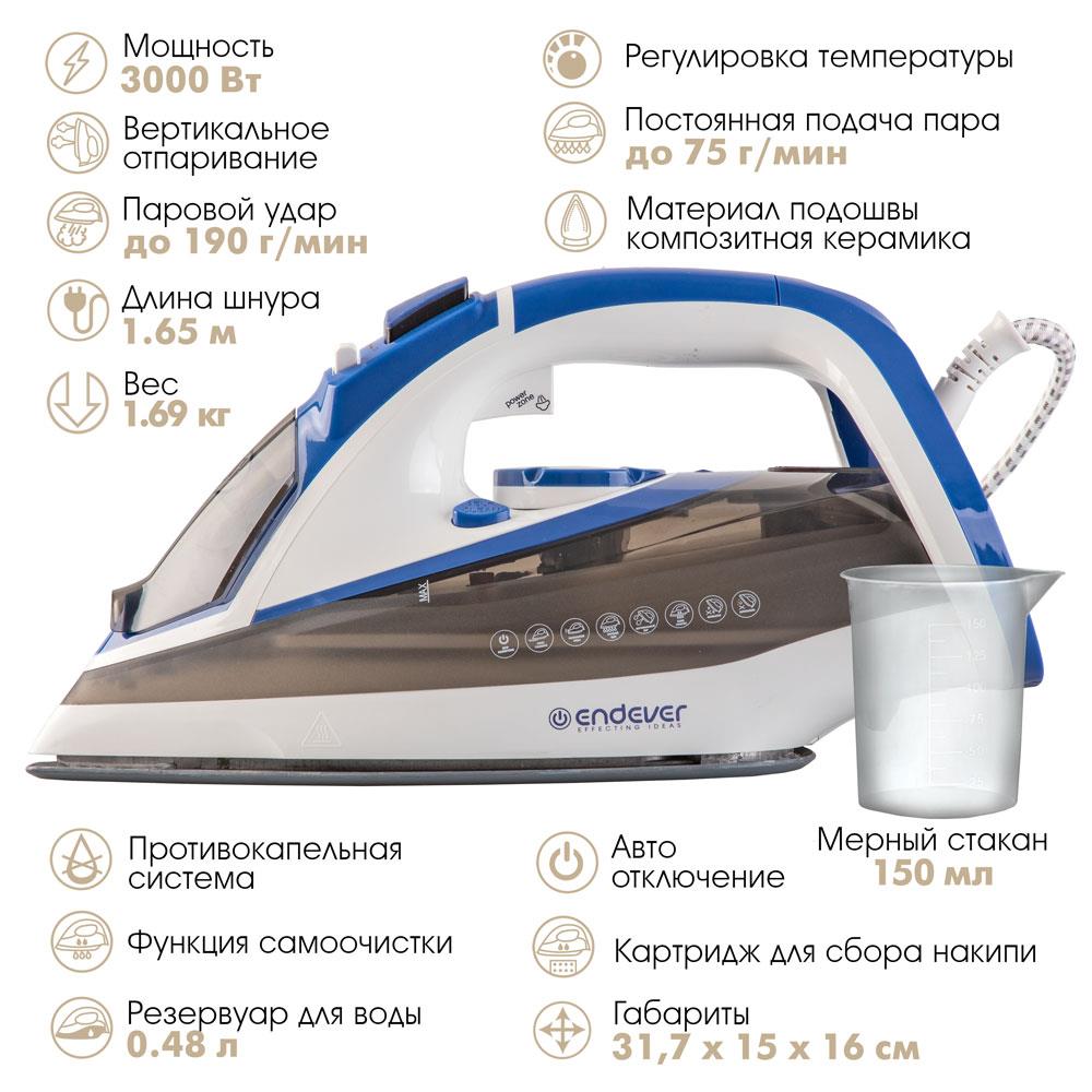 Утюг Endever Delta-231 (3000 Вт/синий, черный, белый)