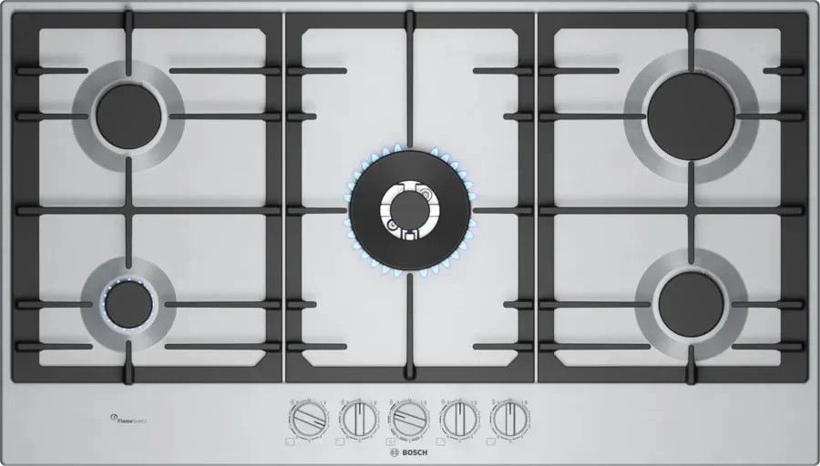 Газовая варочная панель Bosch PCR9A5I90M сочетает в себе минималистичный внешний вид и продуманную эргономику: нержавеющая сталь придаёт рабочей зоне элегантность и обеспечивает простоту ухода.