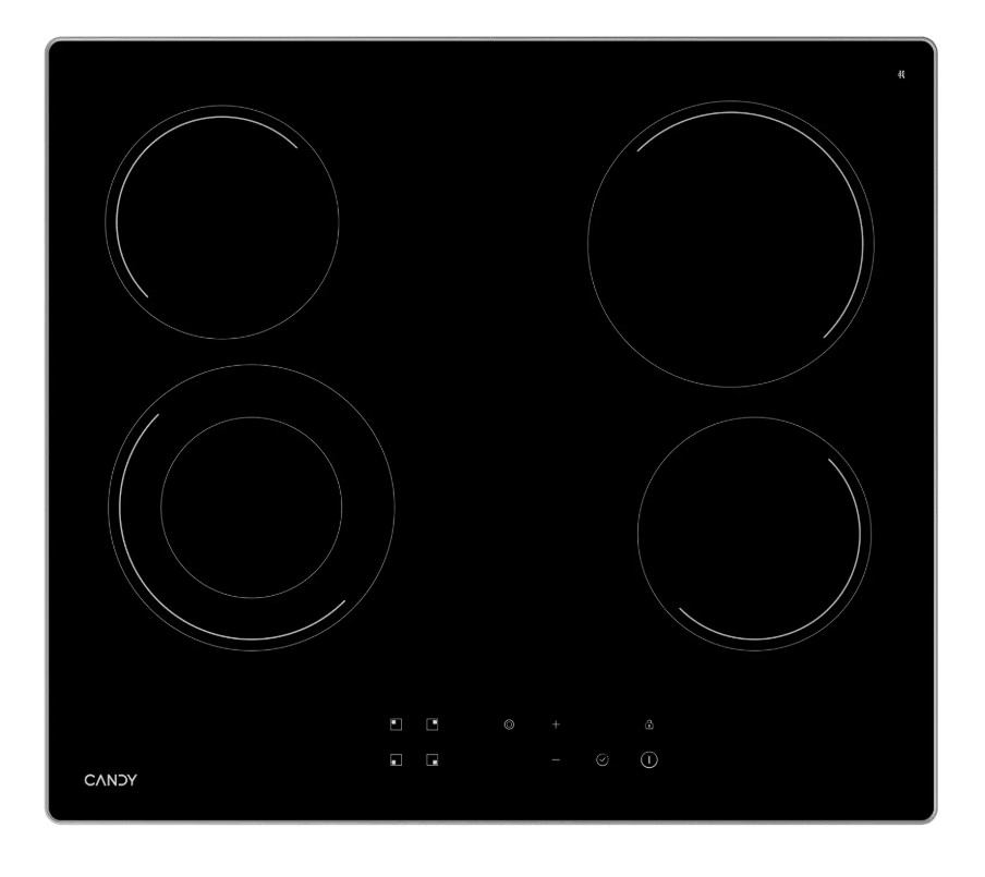 Candy CHXC64DAB — это встраиваемая независимая электрическая варочная панель из линейки NeoClassic, выполненная из черной стеклокерамики с рамкой цвета «нержавеющая сталь». Она оснащена четырьмя конфорками быстрого нагрева типа Hi-Light, одна из которых имеет двухконтурную зону расширения для использования посуды разного диаметра.
