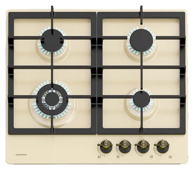 Газовая варочная поверхность Darina 1T38 BGM341 08 BG — это независимая встраиваемая панель в ретро-стиле, выполненная из эмалированной стали бежевого цвета.