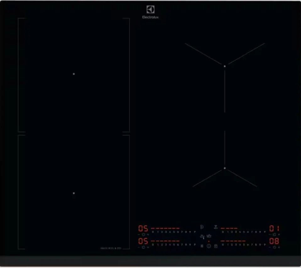 Индукционная варочная панель Electrolux EIS67453 из коллекции SenseBoil — это сочетание элегантного дизайна и инновационных технологий. Стильное черное стеклокерамическое покрытие, скошенный край без рамки и сенсорные переключатели создают современный и минималистичный облик. Управление расположено спереди справа, что обеспечивает удобство в использовании. Подсветка панели управления добавляет функциональности и эстетической привлекательности. Эта модель оснащена четырьмя индукционными конфорками общей мощностью 7800 кВт, что позволяет быстро и эффективно готовить различные блюда. Одна из зон является двухконтурной, что расширяет возможности приготовления.