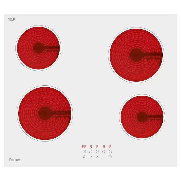 Электрическая варочная панель Evelux шириной 60 см, выполненная в белом цвете, идеально впишется в интерьер любой кухни.