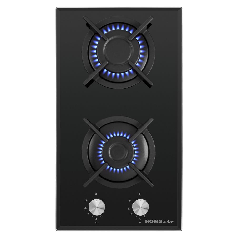 Газовая варочная поверхность HOMSair HGG321BK − компактная модель, которая подходит для использования в небольших помещениях. Такой прибор можно устанавливать на дачах, в загородных домах, квартирах-студиях с целью экономии пространства. Конструкция поверхности предусматривает две конфорки ALBEK, особенность которых в матовых крышках. На панели из закаленного стекла установлены чугунные решетки, которые служат защитой панели и конфорок, позволяя дну посуды не соприкасаться с их поверхностями. Благодаря решеткам вам удастся избежать появления царапин на стеклянной поверхности.