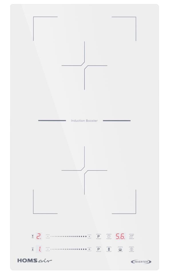 Встраиваемая независимая индукционная панель HomsAir HIC32SBG Inv отличается двумя конфорками диаметром 18 см и 16 см, которые работают с показателями 2,3 кВт и 1,5 кВт. Датчик наличия посуды позволяет автоматически определять зону нагрева. Слайдерное управление для плавной регулировки мощности, режим «Бустер», функция Stop+Go, память на девять программ и таймер делают эксплуатацию удобной.