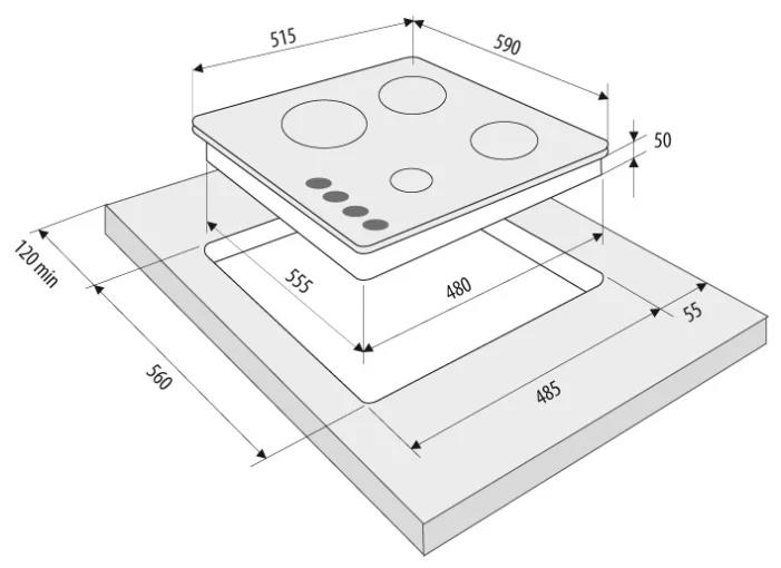 Тип панели: газовая варочная поверхность