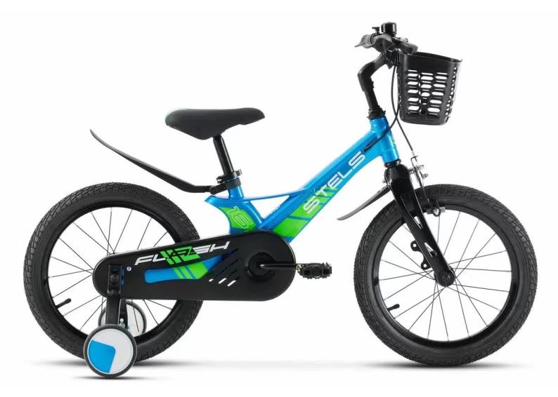 Рама велосипеда изготовлена из магниевого сплава, что обеспечивает его легкость и прочность. Жесткая вилка из магниевого сплава добавляет стабильности и надежности. Диаметр колес составляет 18 дюймов, что позволяет комфортно передвигаться по городским улицам и паркам. Вес велосипеда составляет всего 9,5 кг, что делает его удобным для транспортировки и хранения. Велосипед оснащен передним клещевым тормозом и задним барабанным тормозом с ручным приводом. Это обеспечивает эффективное и безопасное торможение в любых условиях. Защита цепи, съемные боковые колеса, пластиковые крылья и передняя корзинка делают этот велосипед удобным и функциональным. Велосипед STELS Flash KR 18" Z010 подходит для обучения и прогулочного катания в городских условиях. Он станет отличным выбором для вашего ребенка, обеспечивая комфорт, безопасность и удовольствие катания.