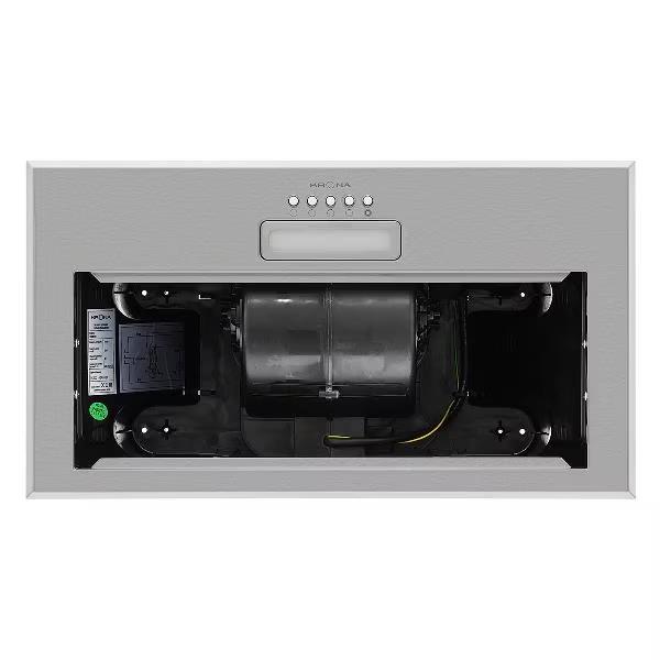 Вытяжка Krona Ameli Light 600 Inox PB полностью встраивается в шкаф 60 см и рекомендуется для установки в кухне площадью не более 11 м². При компактных габаритах (25,1х52,5х29,1 см) эта модель работает с максимальной производительностью 550 м³/ч в режиме отвода, т.е. выведения загрязненного воздуха. Для доступа к функции рециркуляции приобретается дополнительный угольный фильтр.