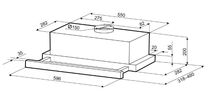 Встраиваемая вытяжка с современным сенсорным управлением на выдвижной панели.