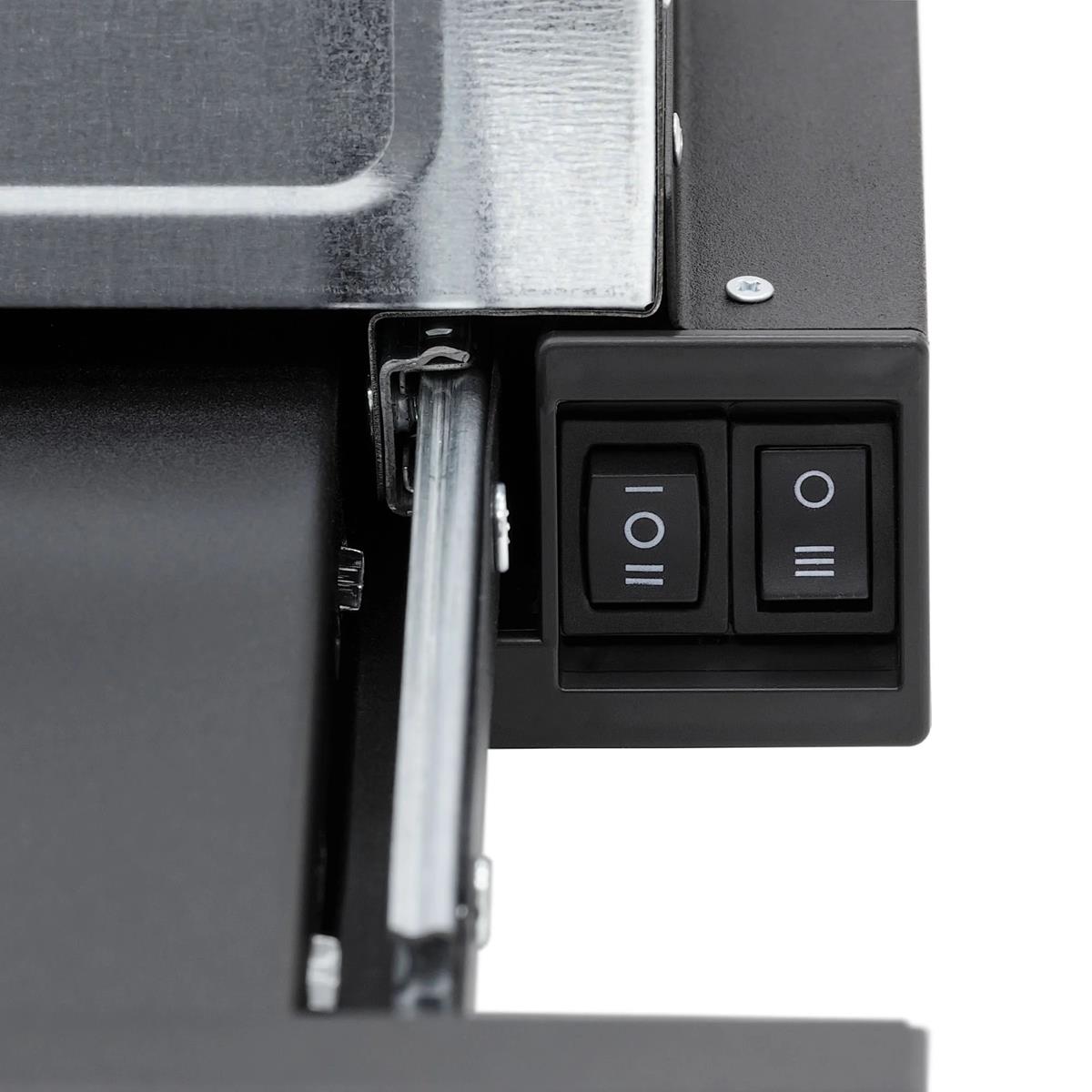 Вытяжка простая в установке и удобная в использовании. Функция "Slide Stop" запоминает последнюю выбранную скорость.
