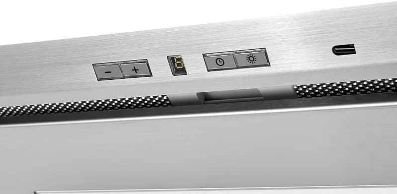 Вытяжка сравнительно небольшая и легко монтируется в подвесной кухонный шкаф. Корпус устройства сделан из нержавеющей стали. Такой материал устойчив к температурному воздействию, а также к моющим средствам. Прибор отличается высокой прочностью, надёжностью, долговечностью и имеет характерный металлический цвет.