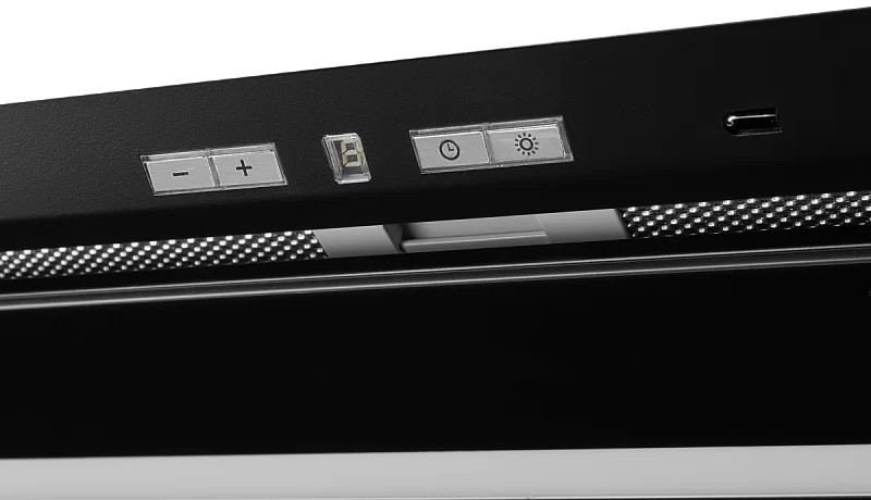 Вытяжка Kuppersberg INBOX 73 B обладает стильным черным корпусом и отлично подойдет для кухонь в стиле Hi-tech. Кнопочное управление имеет вид ряда клавиш на панели управления. Они отвечают за регулирование скорости, а также за включение и выключение подсветки. Этот традиционный тип контрольных устройств по-прежнему широко используется, и одними из главных его преимуществ являются простота и надежность. Современные органы управления выдерживают десятки тысяч циклов включения-выключения.