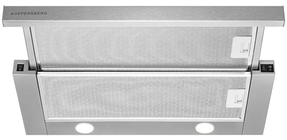 Вытяжка Kuppersberg SLIMTURBO 60 X выглядит стильно и элегантно. Благодаря серому металлическому корпусу и серебристым деталям модель хорошо сочетается как с классическим, так и с современным гарнитуром. Она полностью убирается в подвесной шкаф и не перетягивает на себя внимание.