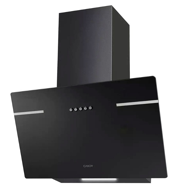 Candy CVXW64MB — это наклонная пристенная вытяжка в черном цвете, предназначенная для очистки воздуха в кухнях площадью до 20 м².