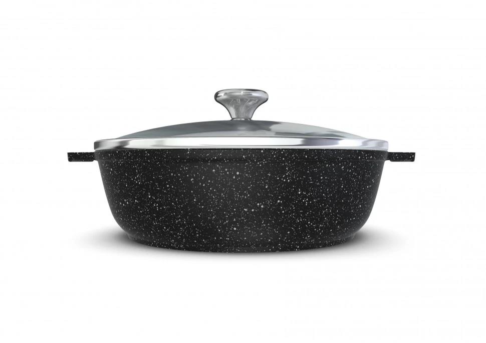 Жаровня НЕВА МЕТАЛЛ ПОСУДА 186530 со стекл. крышкой 3л "Каменная" Черный гранит алюминий 3 л - Интернет-магазин Матрица: бытовая техника, электроника, товары для дома и др.