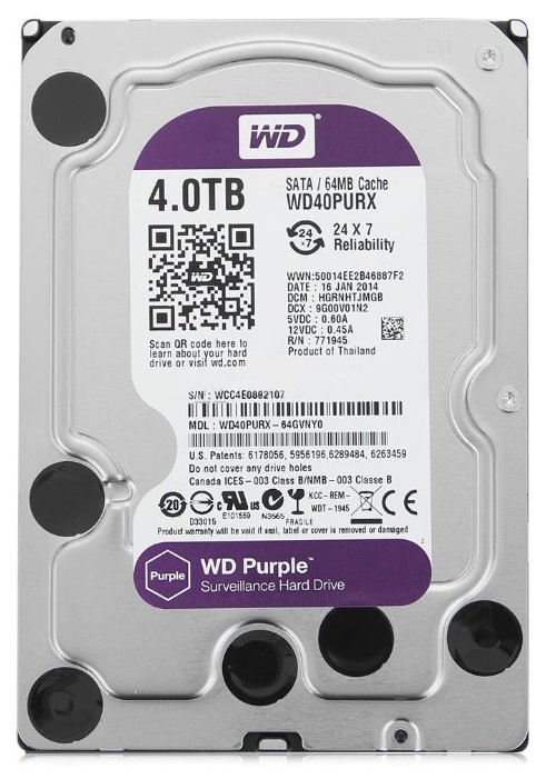 Жесткий диск 3.5" 4000 ГБ Western Digital Purple 4 TB (WD40PURX) , 5400 rpm, 64 МБ